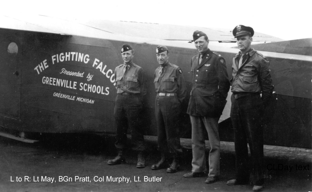 Lieutenant Colonel Murphy would be pilot and 2nd Lieutenant Butler the copilot aboard the lead CG-4A of 52 gliders in the Chicago Mission. As Butler mentioned, they would be carrying Brigadier General Don Forrester Pratt (assistant division commander of the 101st Airborne Division, 1892–1944), Pratt’s aide 1st Lieutenant Lee John May (John L. May in some sources, 1916–1992), and Pratt’s command jeep. Pratt was traveling by glider because he was not a qualified paratrooper.