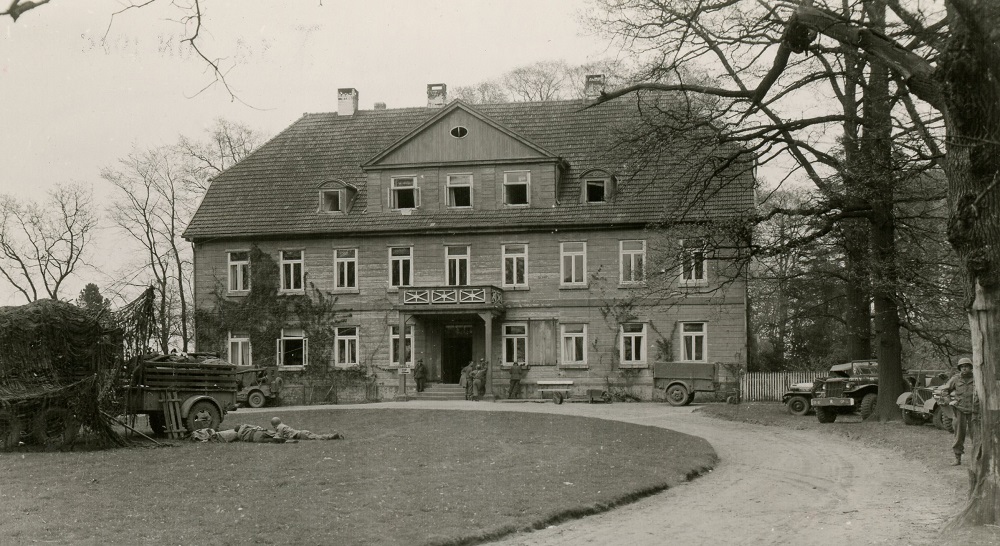 The 11th Cavalry Group crossed the English Channel on November 23, 1944, with the 44th Cavalry Reconnaissance Squadron disembarking in Rouen, Normandy. The squadron departed Normandy on December 6, 1944, and moved northeast to the front lines along the Roer River, arriving at Gereonsweiler, Germany, on December 13, 1944. Days later, to the south, the German offensive through the Ardennes that came to be known as the Battle of the Bulge began. The 11th Cavalry Group’s sector was quiet by comparison, and the troopers primarily performed patrol duties and occasionally conducted raids.