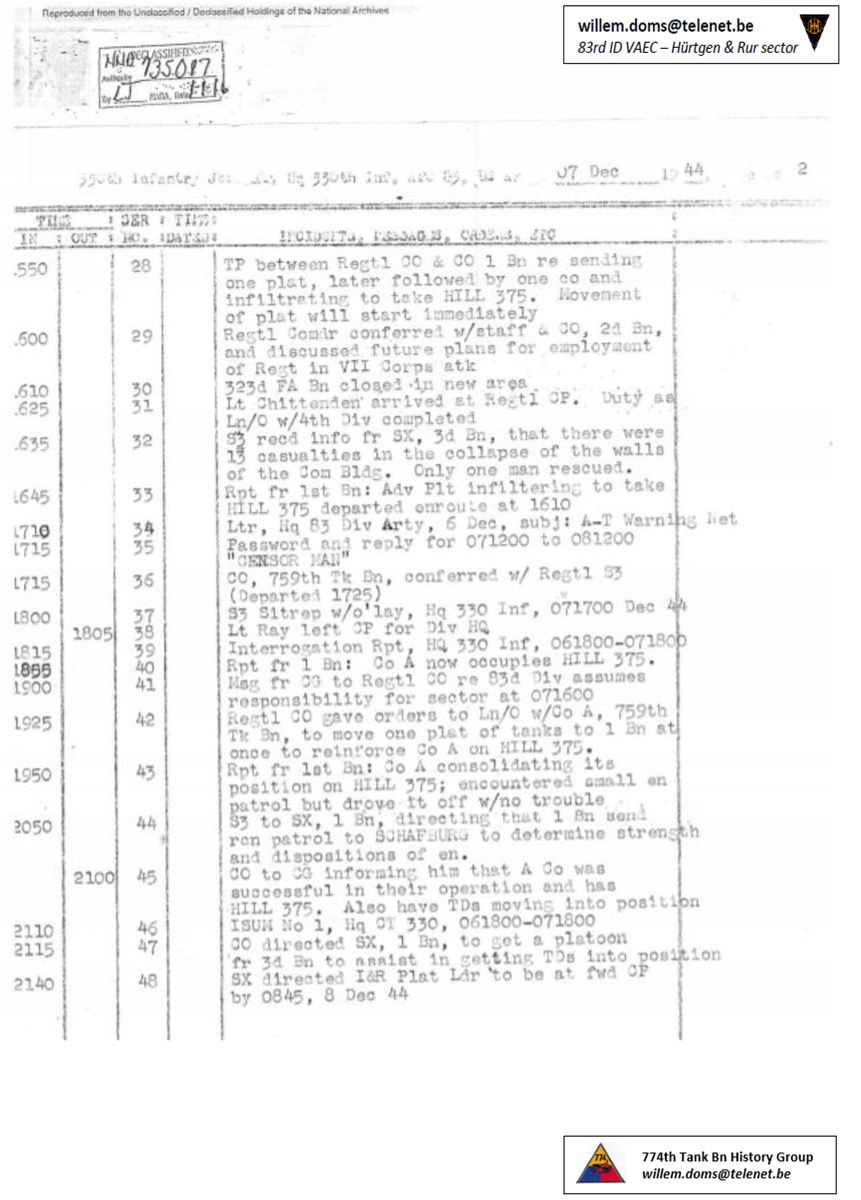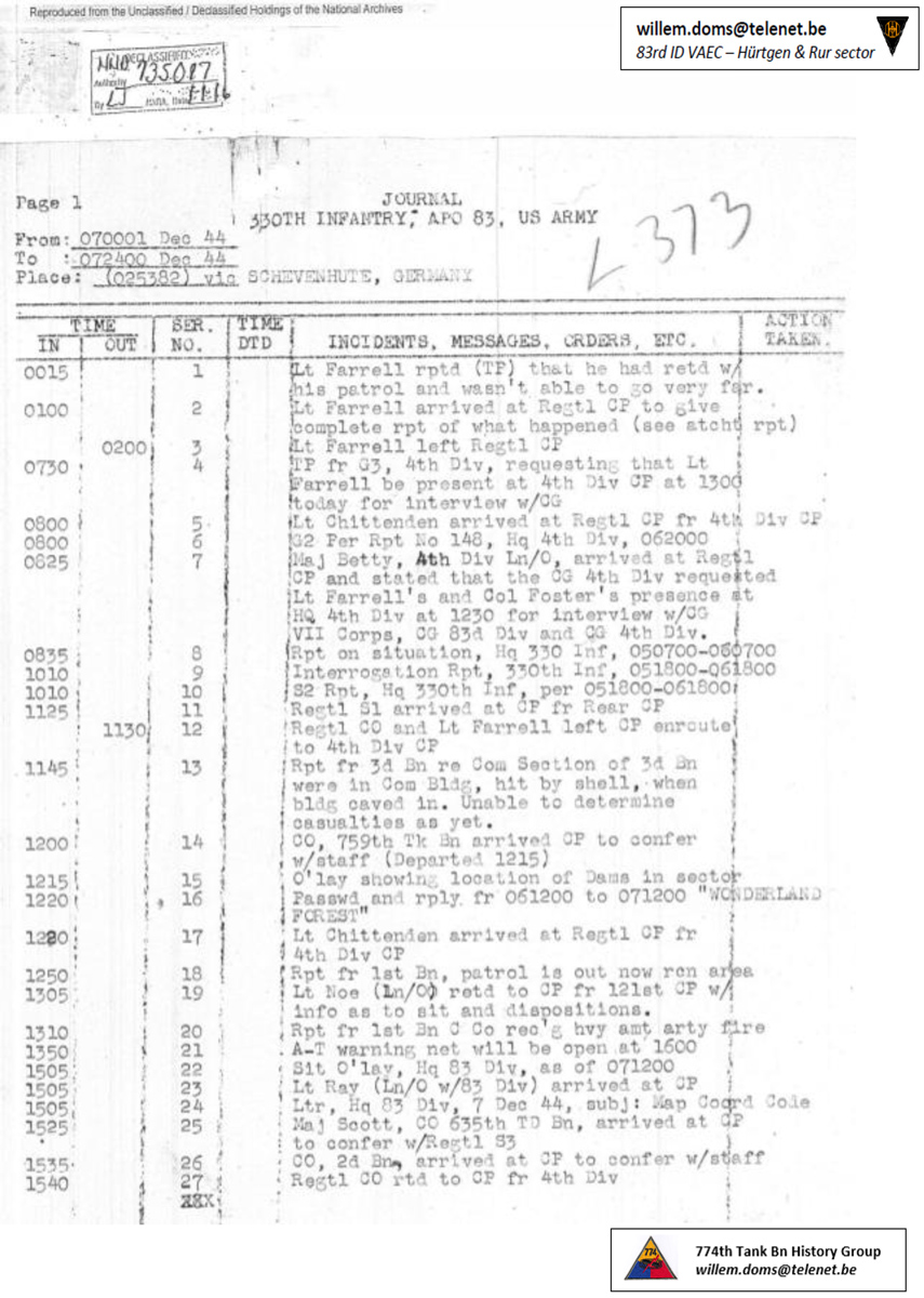 330th Infantry Journal, December 7, 1944, courtesy of Willem Doms.