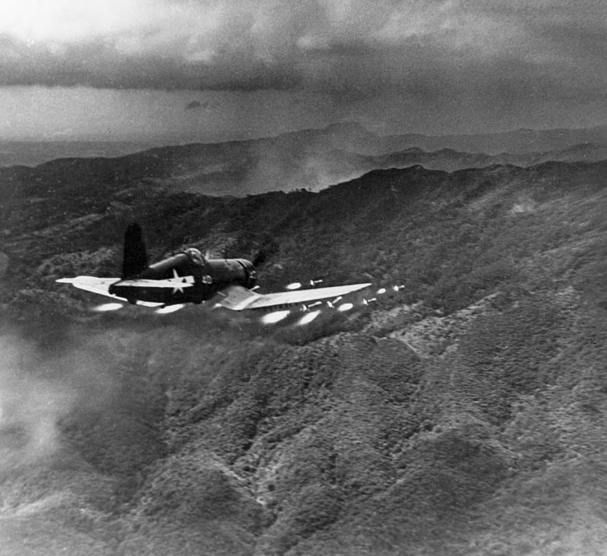 Equipped with the Vought F4U Corsair, VMF-441 was operating against bypassed Japanese outposts in the Marshall Islands. Lieutenant Mendinhall’s first mission was against Taroa in the Maloelap Atoll on February 28, 1945.
