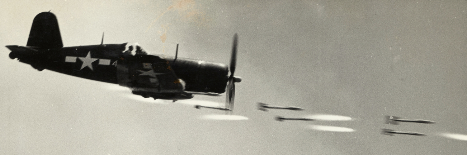 VMF-441 went ashore at Okinawa on April 4, 1945, the fourth day of the invasion. Flying out of a captured Japanese airfield referred to as Yontan Field, VMF-441’s missions were for the most part a mixture of combat air patrols, ground attack, and radar picket patrols.