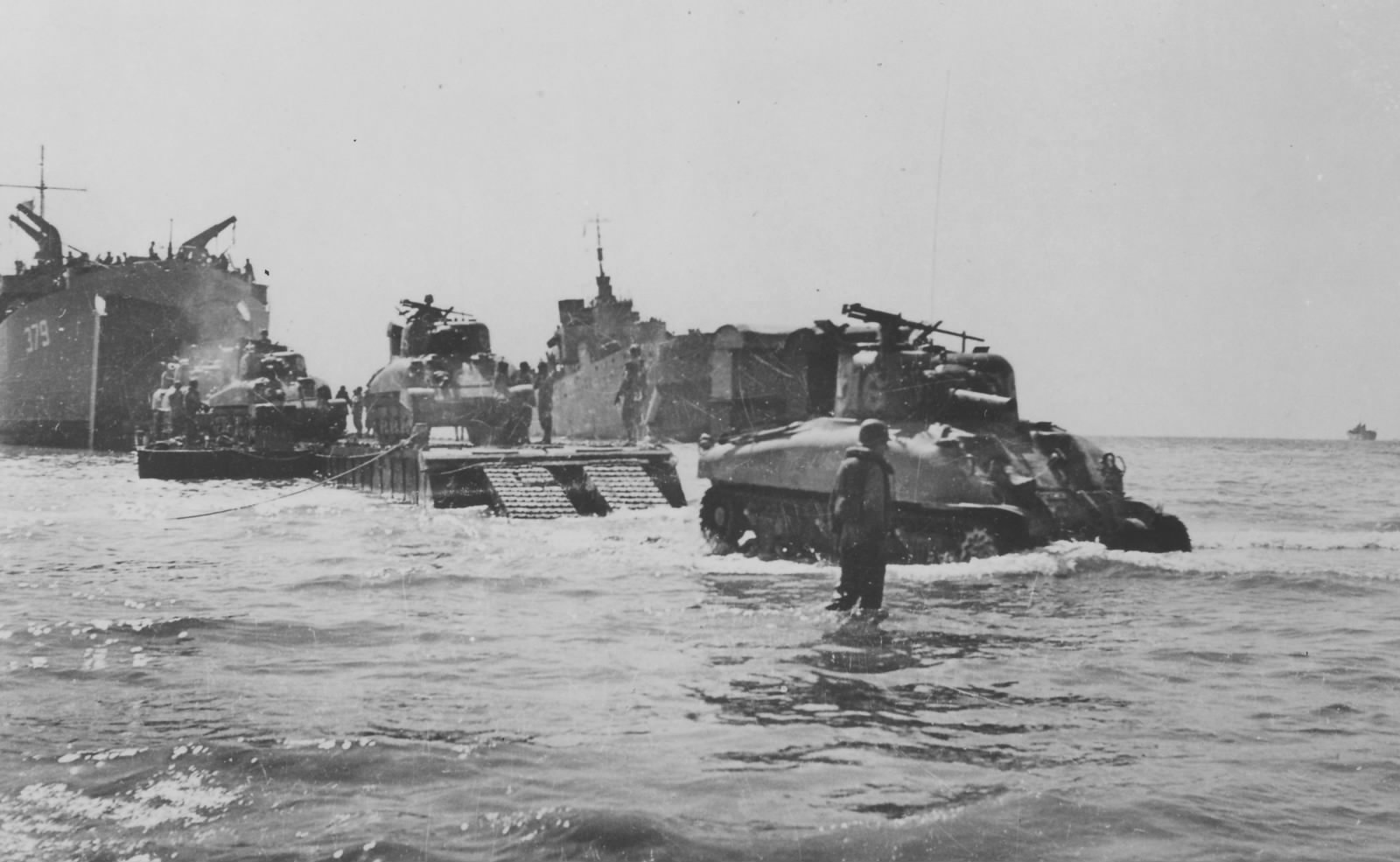 The 191st Tank Battalion did not participate in the Tunisian or Sicily campaigns, but U.S. Army planners selected the unit for the next scheduled amphibious operation: the invasion of mainland Italy. The battalion staged in Bizerte, Tunisia, during preparations for the operation. On September 3, 1943, elements of the 191st Tank Battalion (including Sergeant Kirk’s Company “A”) loaded their vehicles aboard a group of six L.C.T.s (Landing Craft, Tank). On September 9, 1943, they landed under heavy German fire at Paestrum, Italy.