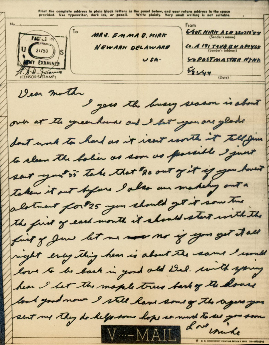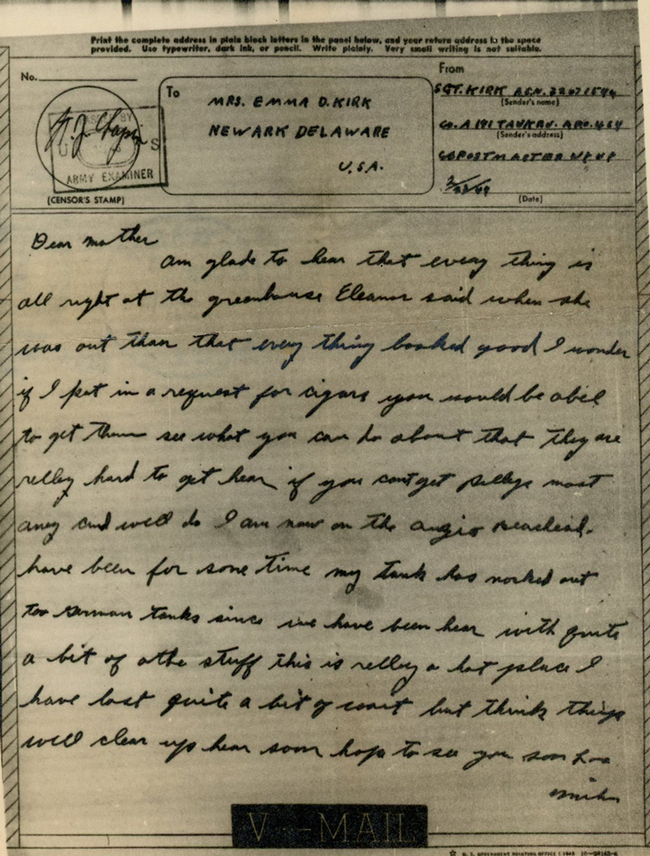 Original Text of Staff Sergeant Kirk’s May 21, 1944, V-mail