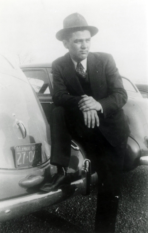 Charles L. Caulk, Jr. graduated from Salesianum High School and completed three years at the University of Delaware in Newark. He moved to Pennsylvania sometime between 1938 (when he was listed on a Wilmington city directory as a student) and April 17, 1940, when he was listed on census as a lodger at the Young Men’s Christian Association (Y.M.C.A.) at 339 East Main Street in Coatesville, Pennsylvania. The entry stated that he was working as a metallurgist at a steel mill. Later that year, when he registered for the draft on October 16, 1940, Caulk had moved to the Norristown Y.M.C.A. At the time, he was working at the Alan Wood Steel Company in nearby Ivy Rock, Pennsylvania.