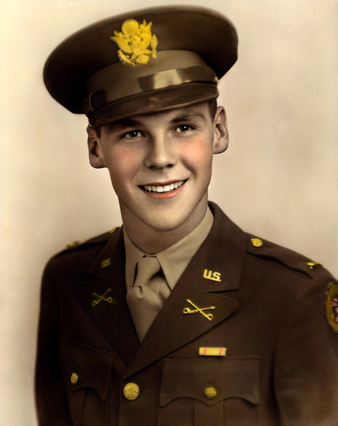 Soon after moving to Arizona, Six volunteered for the U.S. Army. An article, printed in the Arizona Republic on May 3, 1940, stated that “Six Arizonians recruited [in Phoenix] were sent last night to join cavalry units at Fort Bliss” including Leroy C. Six. He was presumably assigned to the 1st Cavalry Division there. A photograph of Lieutenant Six taken around 1943 shows him wearing Cavalry insignia, suggesting that attended Cavalry Officer Candidate School (O.C.S.) and was commissioned as a 2nd lieutenant. His Individual Deceased Personnel File (I.D.P.F.) indicates that he was commissioned on November 13, 1942, and that he was a Field Artillery officer.