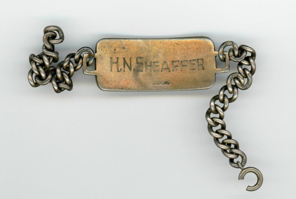 A military service record, filled out around August 1946 by an unknown member of his family at the request of the State of Delaware Public Archives Commission, indicates that Sheaffer was in the Reserve Officers’ Training Corps (R.O.T.C.) at the University of Delaware.
