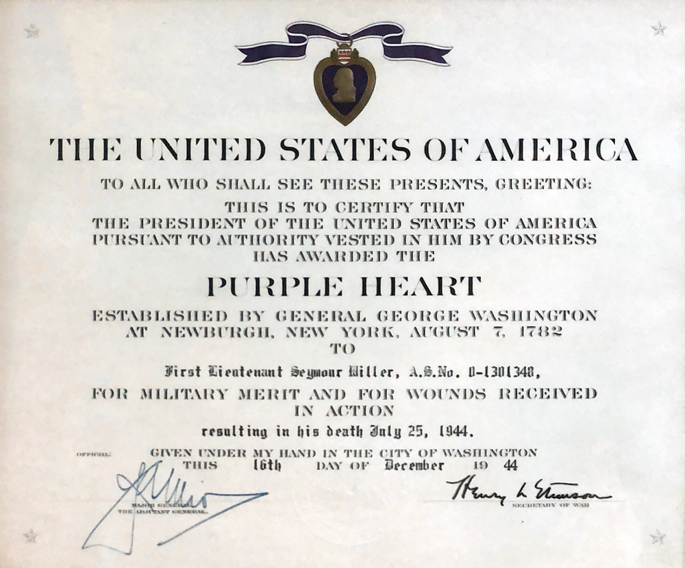 Lieutenant Miller’s family had learned of his death by August 21, 1944, when the news was printed in Journal-Every Evening. Miller was posthumously awarded the Purple Heart.