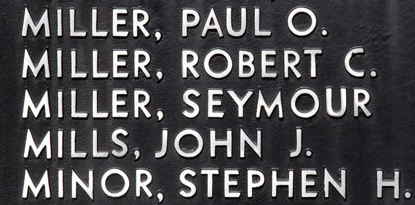 Lieutenant Miller is honored at Veterans Memorial Park in New Castle, Delaware, and on a memorial at the Jewish Community Cemetery for local Jewish servicemembers killed during World War II.
