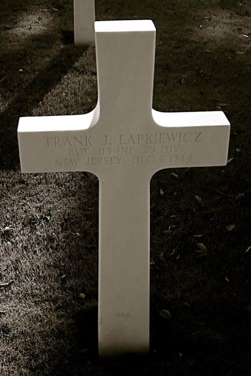 Lapkiewicz’s headstone at the Cambridge American Cemetery (Courtesy of Geoff Roecker)
