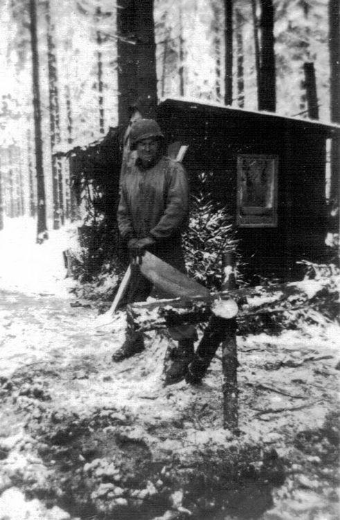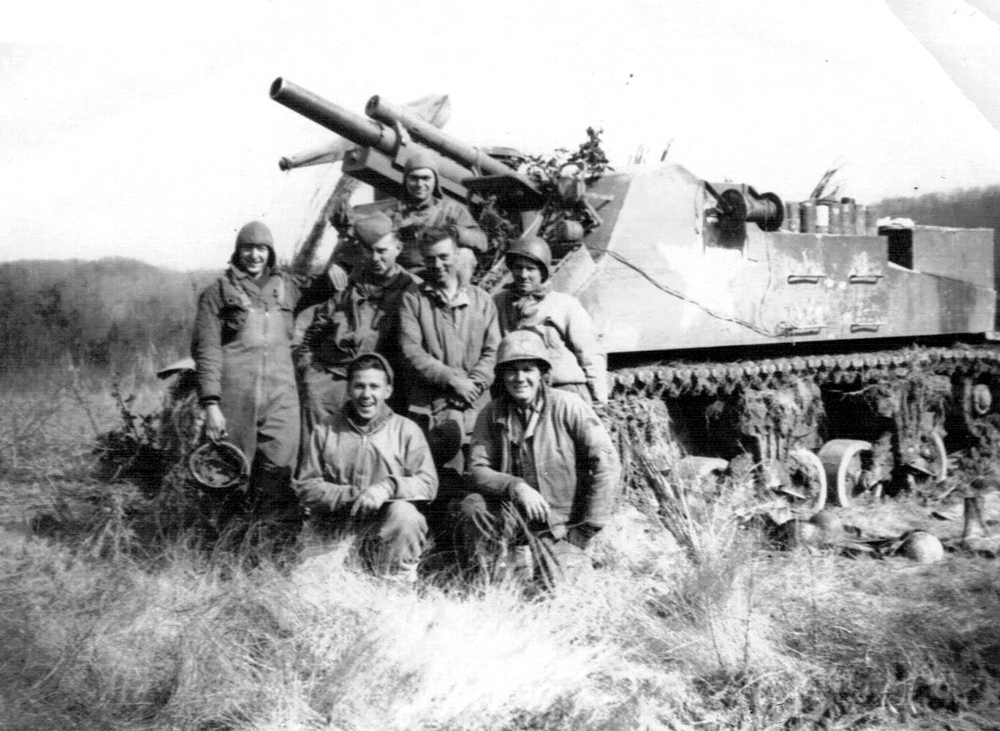 Journal-Every Evening reported that Harper “took part in the fighting in the Hertgen [sic] Forest where he and his men had built themselves a log cabin and had a black rabbit for a pet.” (The 400th Armored Field Artillery Battalion was in fact well south of the Hürtgen Forest until the closing days of the battle there. This anecdote more likely occurred sometime during the static period between October 8, 1944, and December 8, 1944.)