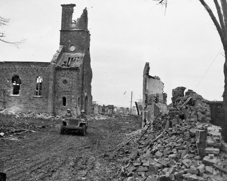 On December 8, 1944, the 400th Armored Field Artillery Battalion was attached to the 5th Armored Division again and moved north to Zweifall, Germany. From December 11–18, 1944, the battalion was in Großhau, a town reduced to ruins during the Battle of the Hürtgen Forest, a costly battle of attrition which produced few gains for the Americans.