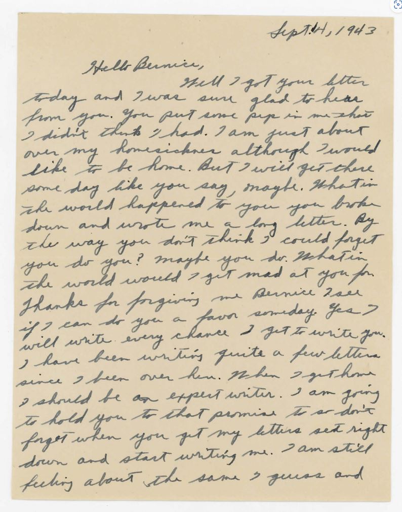 Despite his recent promotion, Cox’s last known letter to Bernice Kwiatkowski, dated September 14, 1943, was glum by his standards: