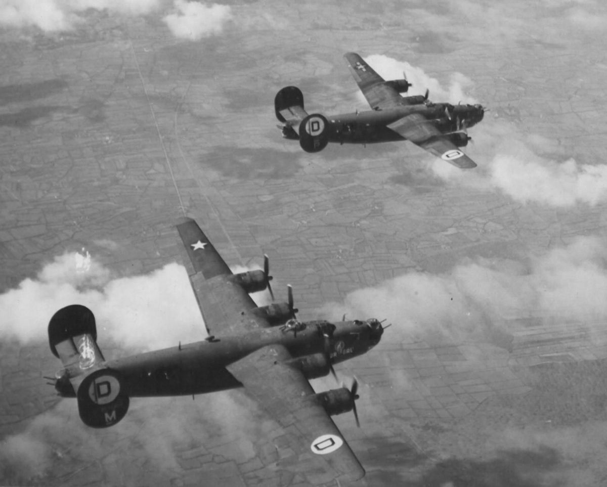 In many missions, Schoolmaster flew as a third pilot aboard a bomber tasked with coordinating his unit and its formation. Failure to maintain the formation would leave the B-24s vulnerable to fighters and increase the risk of a midair collision. Captain Schoolmaster also flew some missions as a pilot or copilot, substituting for a crew’s regular pilot during raids on Wilhelmshaven and Munster.