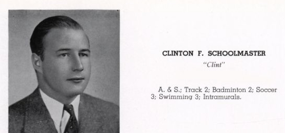 Journal-Every Evening reported that “Schoolmaster majored in physical education, obtaining six varsity letters in athletics.” The article added that he “was on the varsity swimming, track, soccer, and gymnasium teams, and captured the Delaware state diving championship for three successive years.”