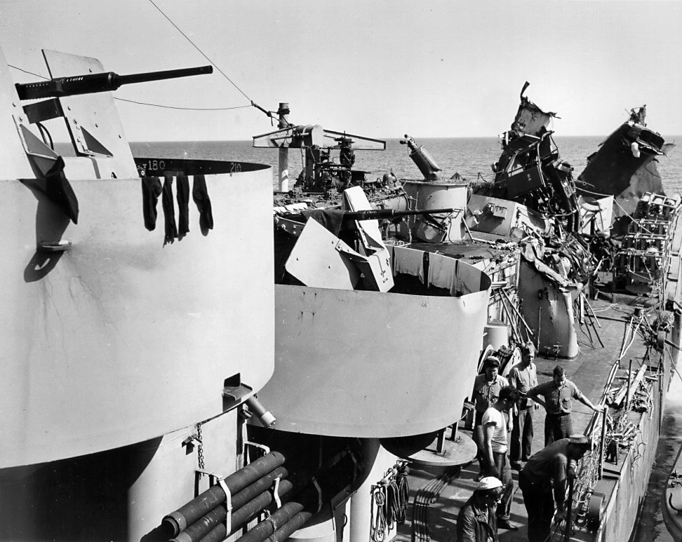 The crew rushed to repair the damage and treat the wounded. Hours before the attack, Menges’s doctor had been transferred to a merchant ship to treat an injured patient, so Chief Pharmacist’s Mate Harold Levy (1913–2003), who was later awarded the Legion of Merit, treated 25 wounded men virtually singlehandedly until a British doctor was dropped off from the destroyer H.M.S. Blankney the following morning. The British tug H.M.S. Aspirant towed Menges into Bougie, Algeria, where the dead and wounded were offloaded before the ship was towed to Algiers.