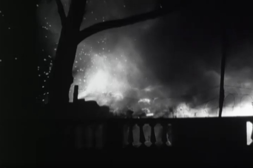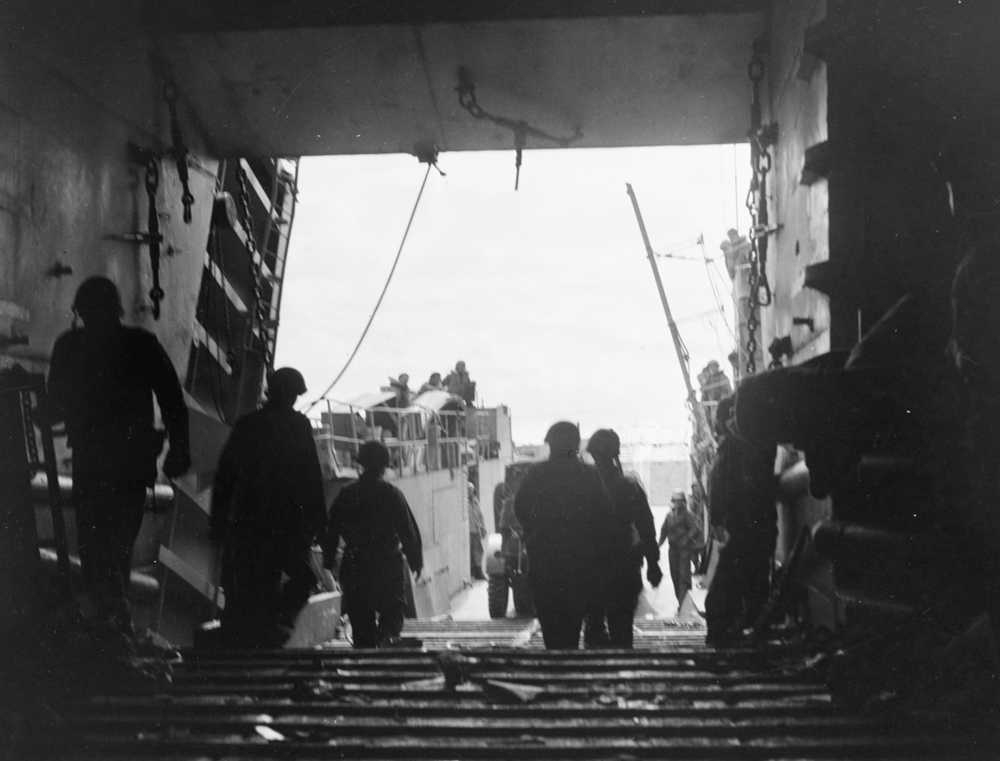 The bomb penetrated the deck and exploded in or near the engine room. LST-282 burst into flame and began to list. The explosion had rendered most of the vessel’s firefighting equipment useless. Belowdecks, the lights went out. Some auxiliary engine room personnel donned gas masks and escaped the smoke-filled ship. Ammunition, both the ship’s and shells for the Army artillery aboard, began cooking off. The crew tried without success to open the bow doors, leaving many soldiers trapped in their vehicles on the burning tank deck. Some of the soldiers were able to escape via a collapsed elevator that had formed a ramp.