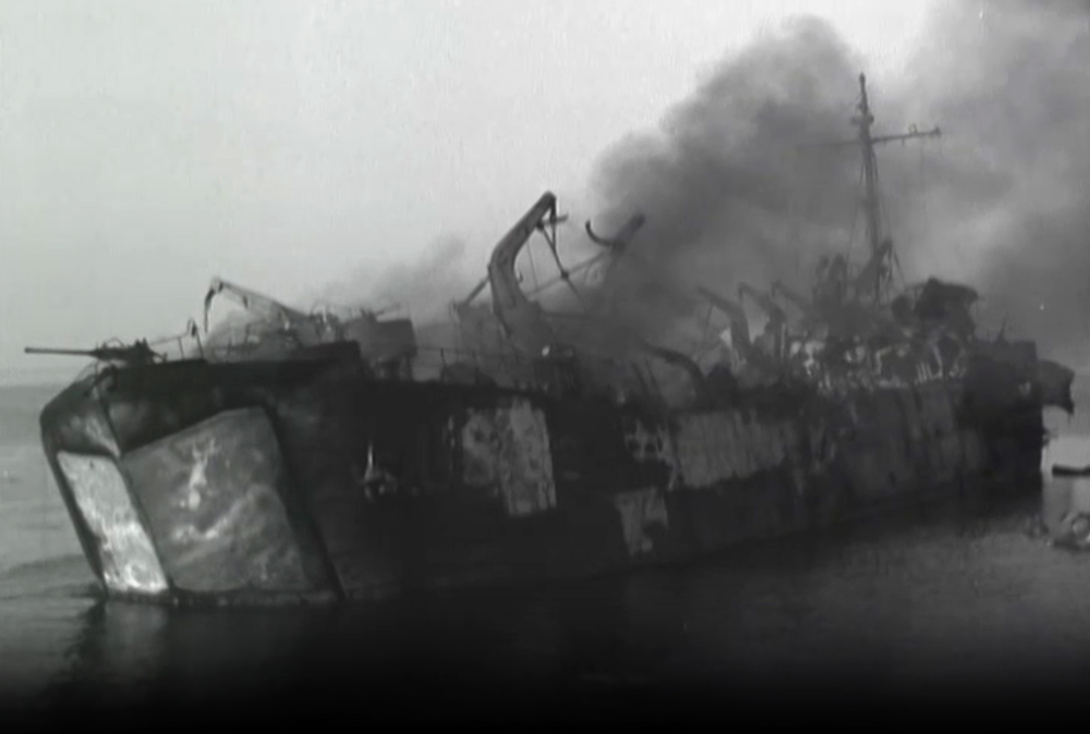 Dieves, Joseph P. “LST Hit by Flying Bomb.” August 15, 1944. Official U.S. Army Signal Corps film 111-ADC-1645. Record Group 111, Records of the Office of the Chief Signal Officer. National Archives at College Park, Maryland. https://catalog.archives.gov/id/15452