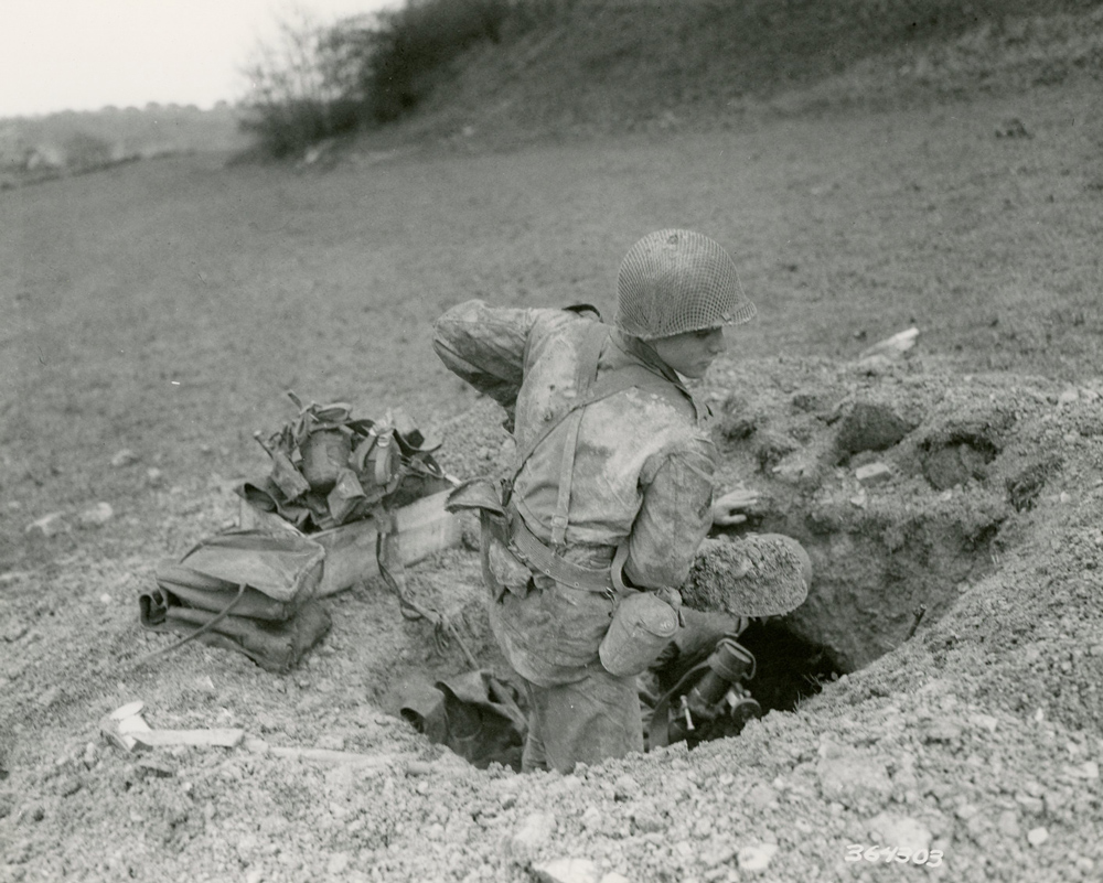 In late 1944, the Germans had launched two major offensives on the Western Front. The first, focused on the Ardennes, began December 16, 1944, resulting in the well-known Battle of the Bulge. On December 31, 1944, another offensive began further south: Operation Nordwind. In mid-January 1945, the 12th Armored Division took heavy casualties near Herrlisheim, France, during fighting in connection with the Northwind offensive. During the month of January 1945, the 17th Armored Infantry Battalion sustained casualties of at least 17 men killed, 114 men wounded, and 166 men missing or captured. Private Tee was among the replacements for these casualties.