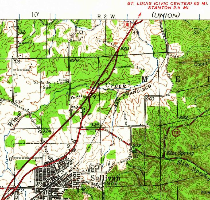 Various sources give slightly different locations for the crash on U.S. 66. The death certificates state the accident occurred two miles west of Stanton, while The St. Clair Chronicle stated it occurred 2½ miles east of nearby Sullivan. That suggests it was roughly midway between the two towns.