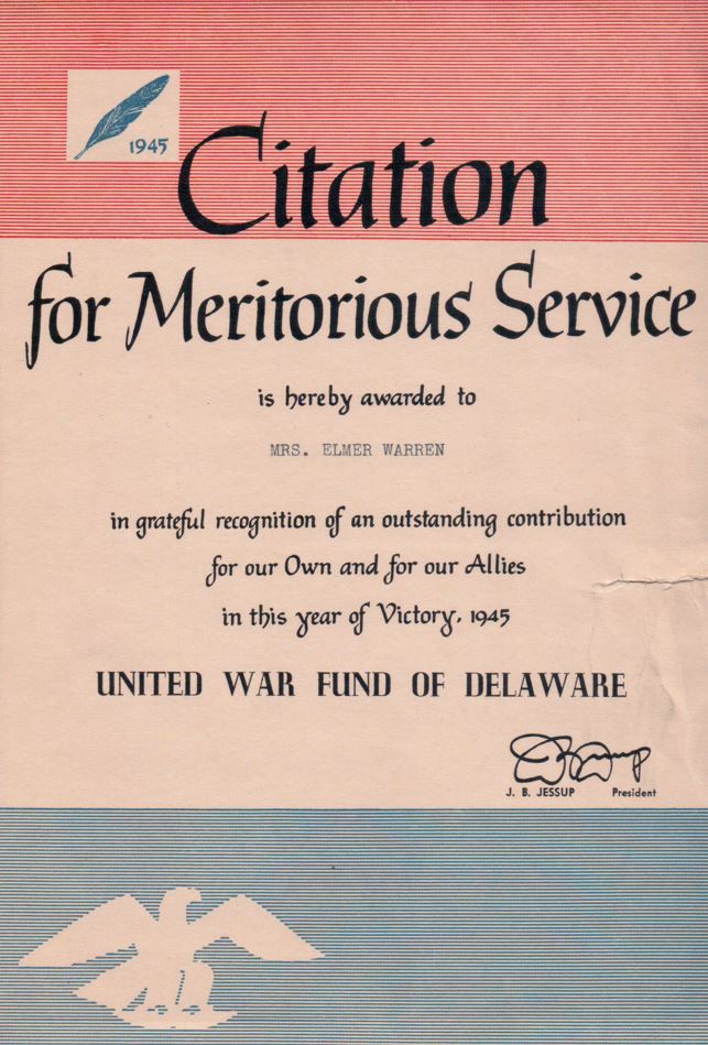 Warren’s mother threw herself into volunteer work to raise money for the war effort. Journal-Every Evening reported on December 2, 1944, that she and four other mothers of servicemen had, in 11 days, sold $4,775 in war bonds.