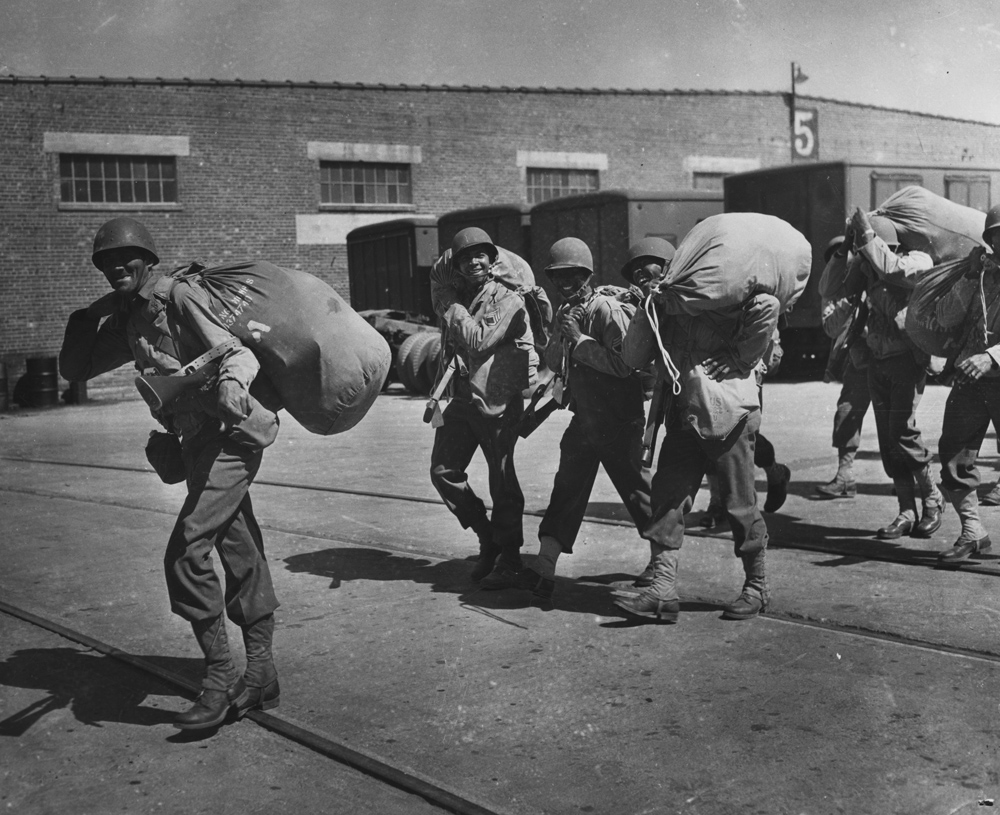 From Fort Dix, Private Allen was dispatched to New Orleans, Louisiana. On August 20, 1943, at the New Orleans Staging Area, he joined the 321st Port Company, 512th Port Battalion, a Transportation Corps unit. His company began that month with only a small cadre who had to train many new soldiers, most of whom were fresh from reception centers. The 321st Port Company’s enlisted men included longshoremen, crane operators, riggers, and receiving or shipping checkers.