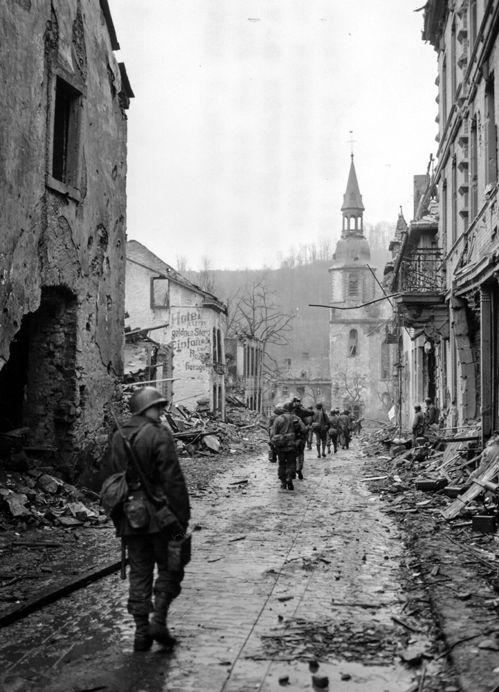 In keeping with their usual doctrine, on February 6, 1945, the Germans launched an aggressive counterattack to forestall an American breakthrough at Brandscheid, Germany, but were repulsed by the 22nd and 358th Infantry Regiments. The following day, the 8th Infantry advanced against Gondenbrett, Germany, with Evans’s 2nd Battalion taking nearby Wascheid.