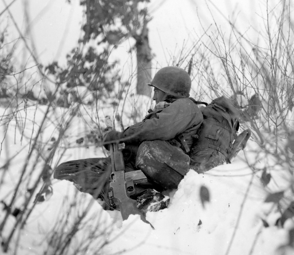 Captain Alan Walter Jones, Jr. (1921–2014), who remarkably enough served in his own father’s division as a battalion operations officer during the upcoming battle, later recalled that the 423rd Infantry Regiment was responsible for covering a six-mile front with just two battalions and its regimental reserve consisted of only of “Elements of Service Company and Regimental Headquarters Company” rather than the customary battalion. He recalled: “In spite of the extreme discomfort of the cold, damp weather and inadequate winter clothing and the obviously extended and exposed position, morale was high. This was a quiet sector where men could learn rapidly but safely.”