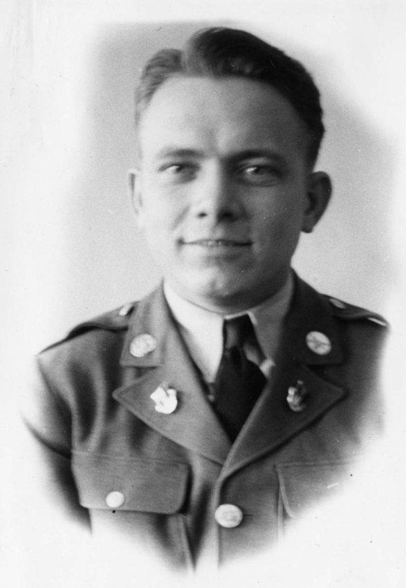 After he was drafted, Private Bukowski was inducted into the U.S. Army at Camden, New Jersey, on October 20, 1943. At the time, he stood five feet, five inches tall and weighed 130 lbs., with brown hair and blue eyes. His medical examination noted that he had uncorrected myopic astigmatism with 20/50 vision in each eye and full dentures.