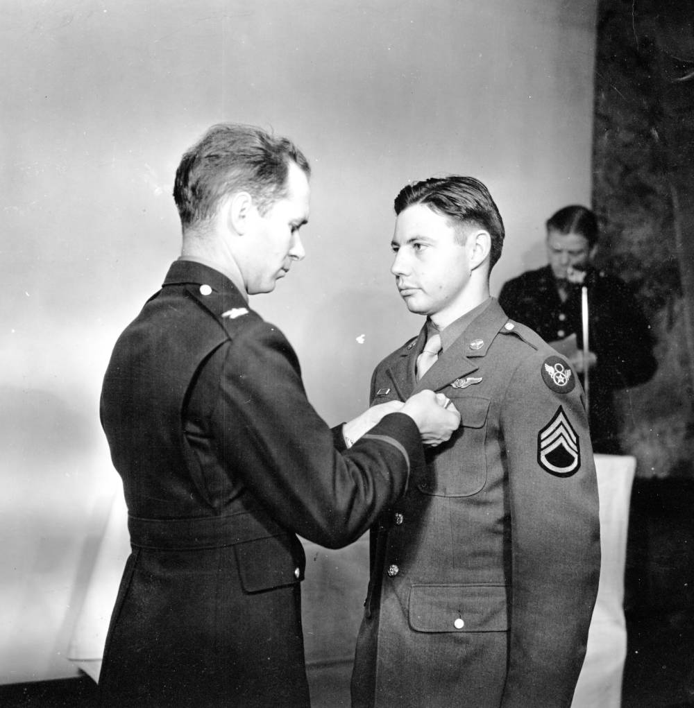 During his career, Sergeant Nelson earned the Medal of Honor, the Purple Heart, the Good Conduct Medal, the American Defense Service Medal, and the European-African-Middle Eastern Campaign Medal with two bronze service stars for the Algeria-French Morocco and Tunisian campaigns. (Distinguished unit badge)